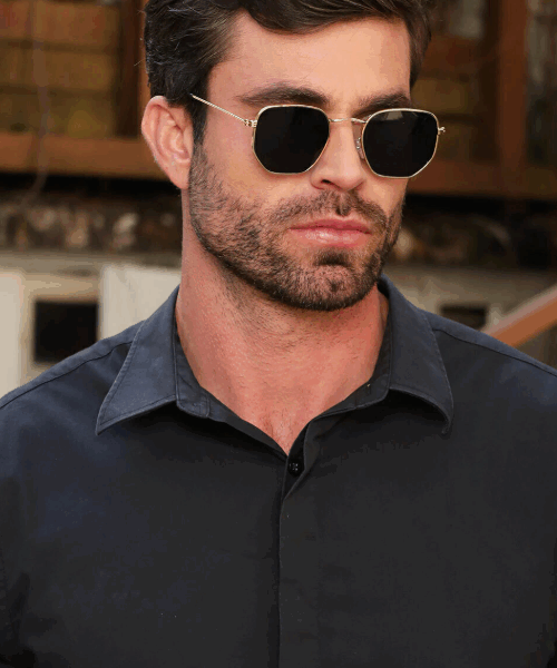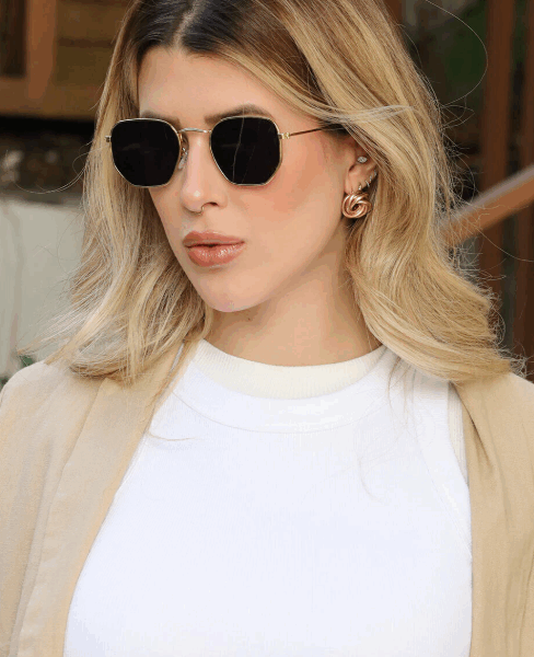 Óculos de Sol Hexagonal Classic Dourado c/ Preto (Unissex)