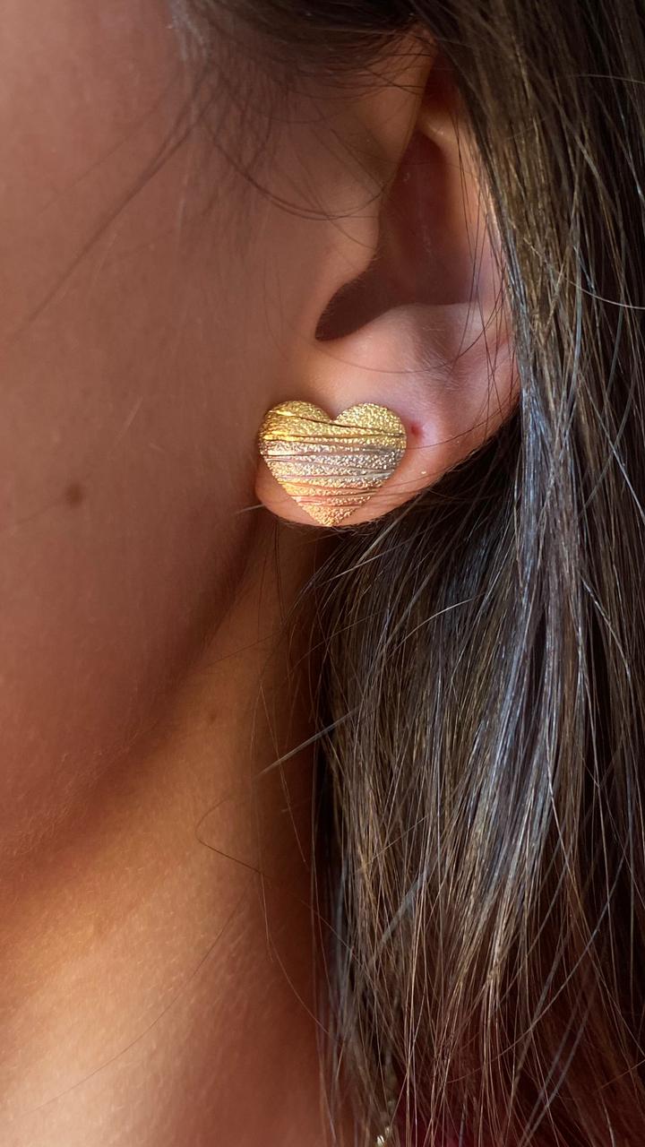 Encante-se com o brilho e o romantismo do Brinco Coração 3 Ouros Joyara.