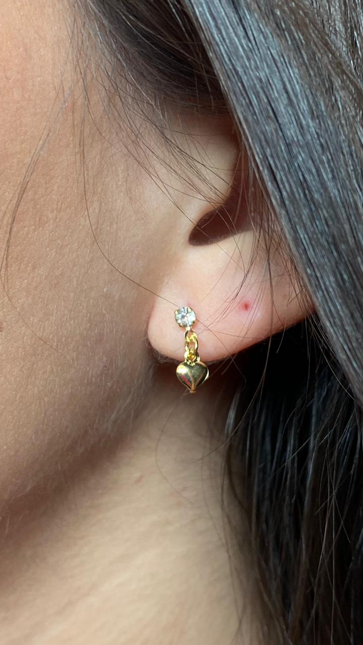 💖 Brinco Ponto de Luz Coração Pendurado Tarraxa Baby Joyara – Semi Joia 💖