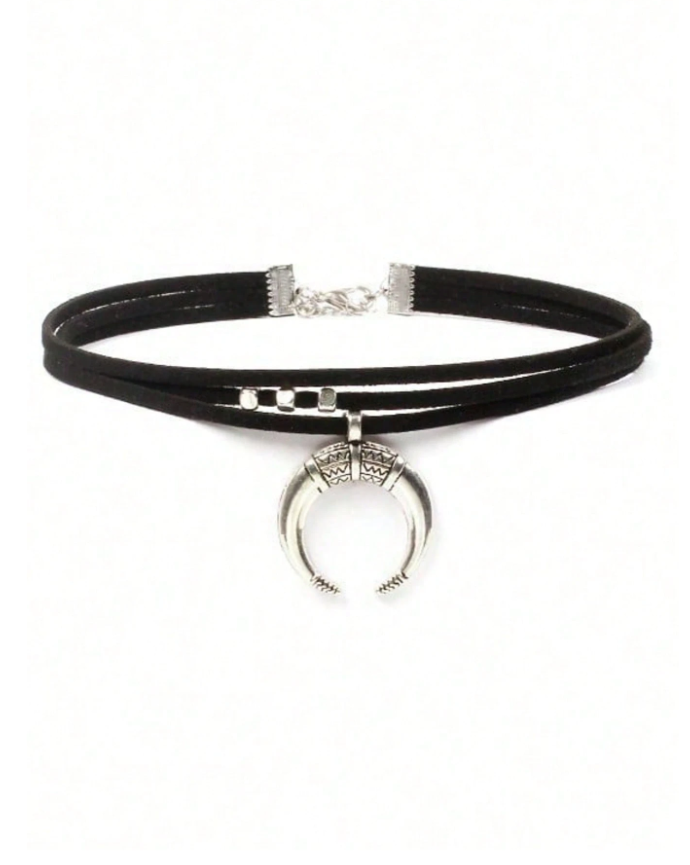 Misteriosa e encantadora, esta gargantilha vintage em tom preto apresenta um pingente em forma de lua crescente, símbolo de magia e feminilidade. Uma peça versátil que une estilo retrô e elegância, ideal para destacar sua personalidade em qualquer ocasião.
