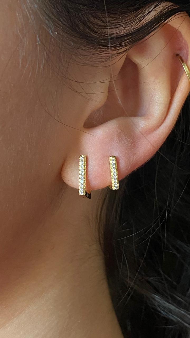 DUO DE BRINCOS QUADRADO CRAVEJADO ZIRCONIAS JOYARA- SEMI JOIA