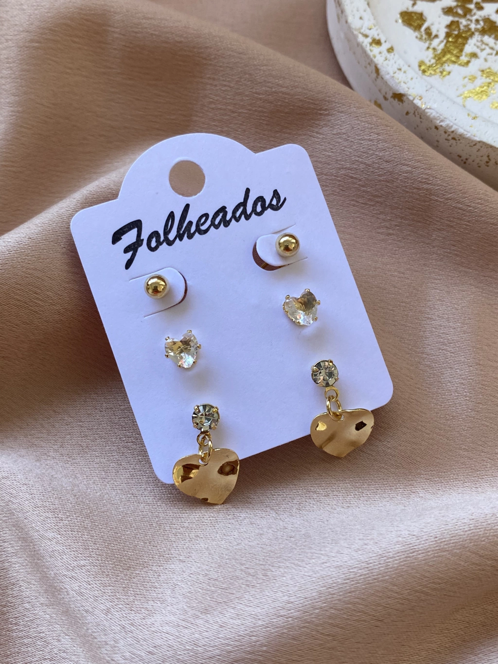 Trio Brinco Corações Folheado a Ouro 18k